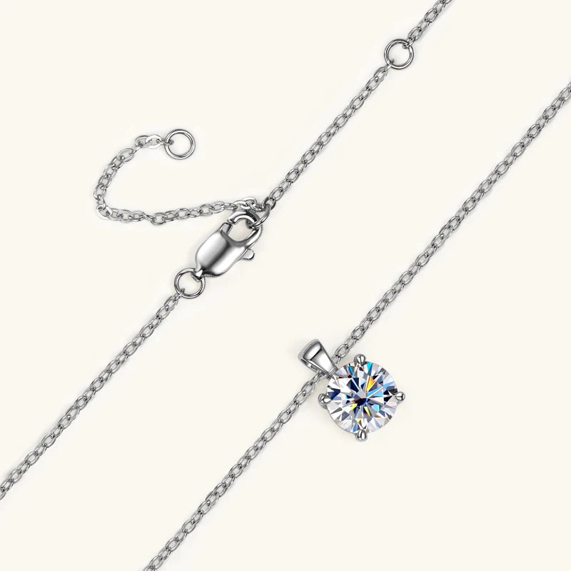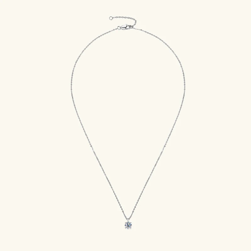 Crafted with a brilliantly cut moissanite and set in high-quality sterling silver, this pendant seamlessly transitions from day to night, ensuring you feel elegantly adorned no matter the occasion. Its timeless design complements any outfit without overwhelming your style.